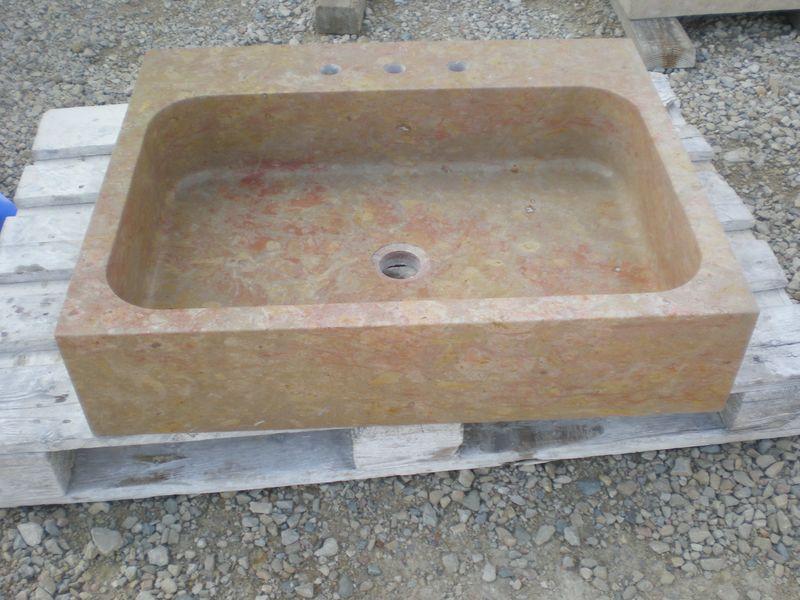 Evier massif grand bac en pierre marbrière de ceniaEvier massif un grand bac taillé dans un bloc de Cénia : pierre marbrière.