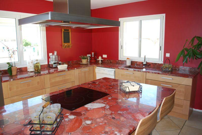 Cuisine en Granit Marinace Rouge posée à Caromb dans le Vaucluse.