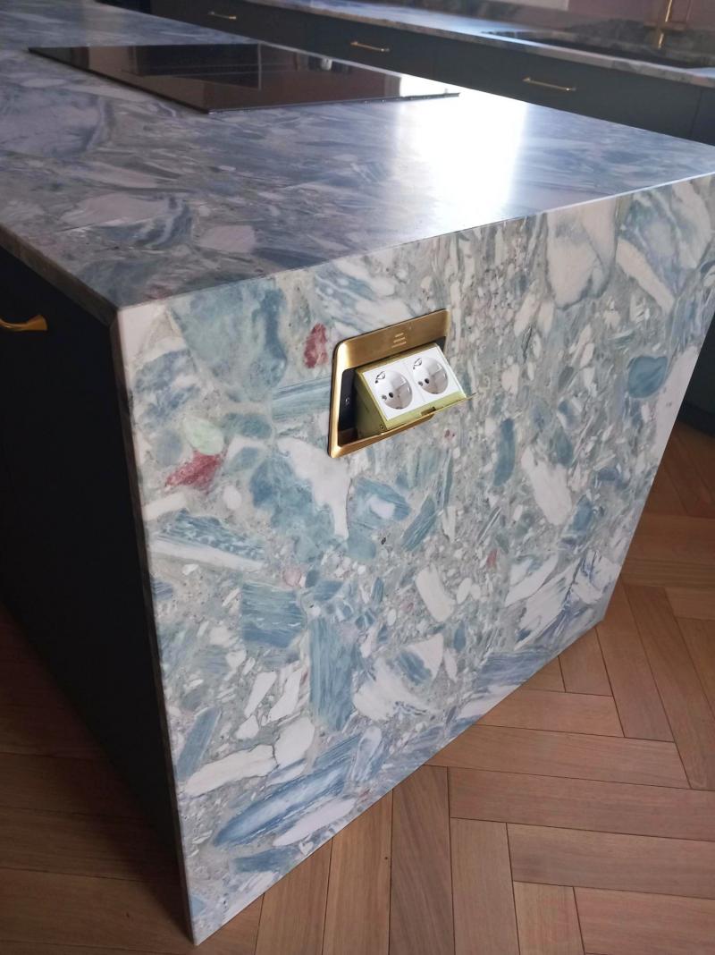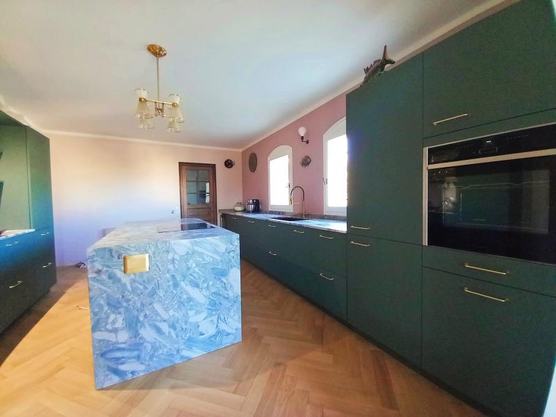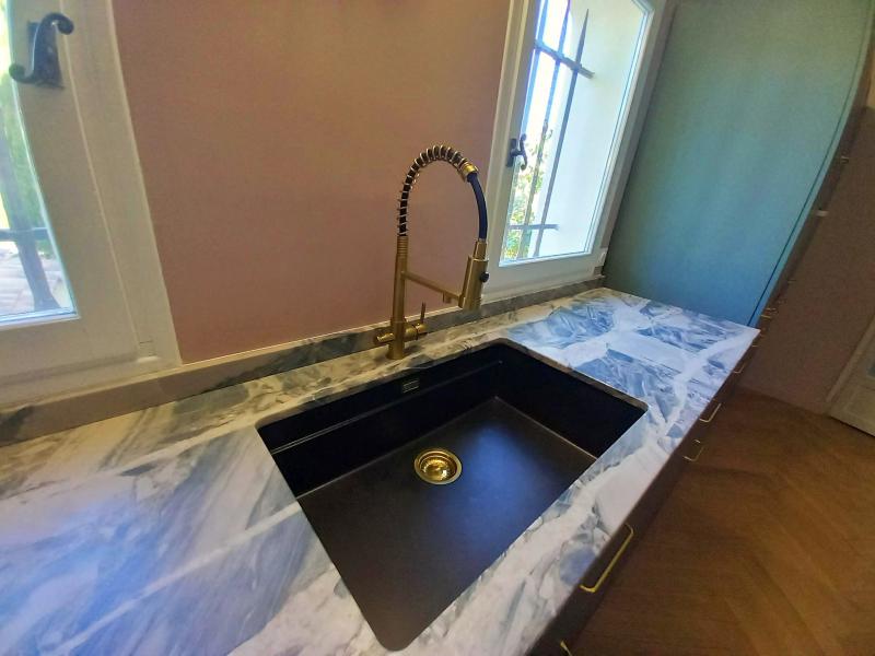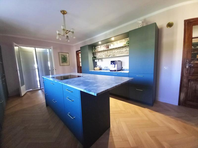 Cuisine en Quartzite Coco Blue finition velour posée à Villeneuve-lès-Avgnon dans le Vaucluse.