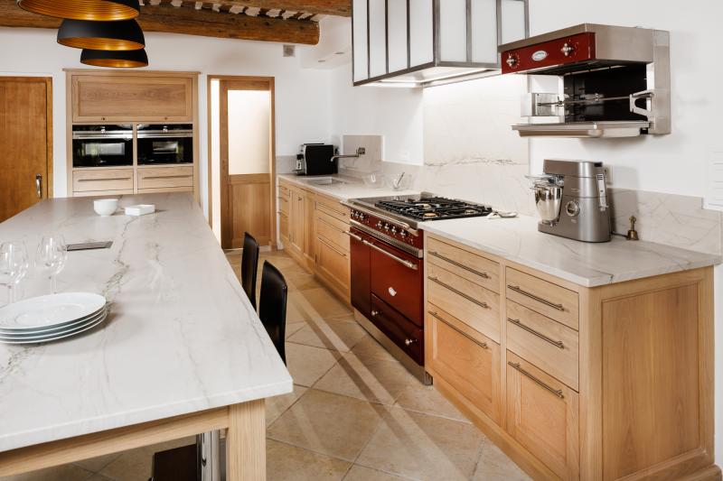 Sobriété au naturelCuisine en Quartzite cuir Calacatta Mont Blanc.