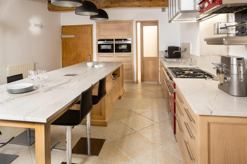 Ilot XXL permettant un espace, de nombreux rangements et une prise intégrée.