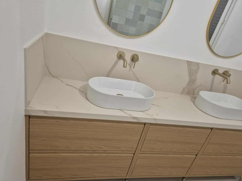 Plan de salle de bain en Laminam Marble Gold en 2cm.
